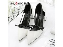 舒浪2016年新款尖头女鞋韩版单鞋女粗跟中跟鞋凉鞋女夏时尚新品潮