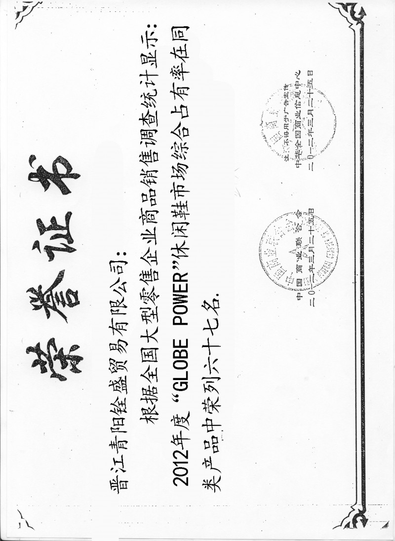 晋江铨盛产品认证证书