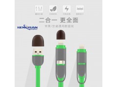 商品: 恒源安卓苹果手机平板充电器通用型原装智能一托二加长吊蓝数据线