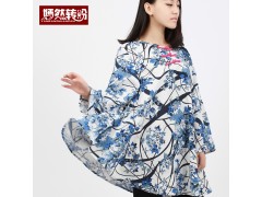 清仓 青花琉璃女装亚棉麻民族风水墨中国风青花瓷印花连衣裙