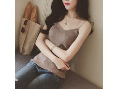 批发2016春夏新款修身竖纹针织打底衫性感显瘦简约细吊带背心