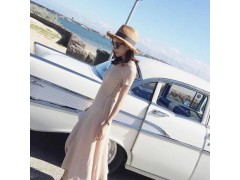 气质款 夏装显瘦大摆裙中长裙法式优雅高腰系带针织连衣裙女