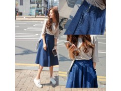 韩国2016新款学院风大码显瘦中长款及膝大摆伞裙牛仔半身裙女