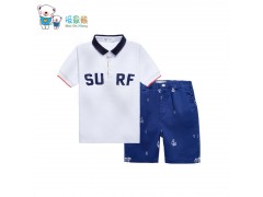 商品: 夏季韩版童装休闲儿童短袖POLO衫短裤男童套装T恤两件套包邮代发