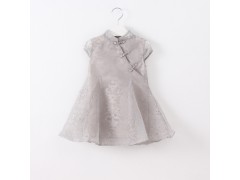 夏款全棉内衬精美欧根纱女童纯色旗袍连衣裙 童裙外贸童装批发