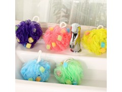 » 活力斯款彩色款丝网加大清洁沐浴球浴花爱心海绵带挂绳搓澡洗澡巾