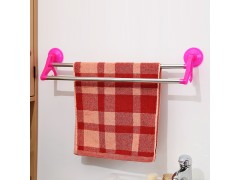 » 吸盘双杆多用款超强吸力浴室浴斤杆挂钩架墙面无痕毛巾架一件代发