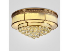 普省简欧卧室吸顶全铜灯客厅书房灯铜材玻璃灯水晶圆形吸顶灯饰