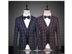 大码男式西装三件套装 韩版休闲西服格子修身 商务结婚礼服潮男装