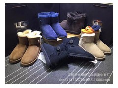新款雪地靴羊皮毛一体雪地靴女士低筒一粒扣百搭经典款