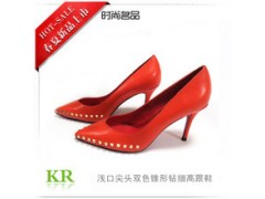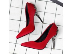 韩版时尚性感雕花金属跟女鞋细跟高跟绒面浅口尖头单鞋婚鞋
