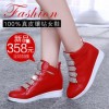 艾淇新款真皮韩版水钻魔术贴休闲女坡跟内增高女鞋高帮鞋批发市场