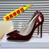厂家批发欧洲站酒红漆皮婚鞋红色尖头浅口高跟单鞋细跟黑色大小码