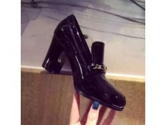 真皮黑色浅口女士中跟