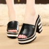 厚底拖鞋女夏新款坡跟时尚高跟凉拖真皮休闲粗跟凉拖鞋凉鞋潮鞋拖