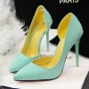 8915-3韩版时尚简约细跟高跟绒面显瘦浅口尖头侧性感镂空单鞋