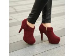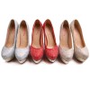 新款新娘婚鞋 红色浅口超高跟细跟防水台圆头婚鞋 帆布女士单鞋