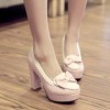 秋超高跟单鞋女2015日系蝴蝶结粉色圆头厚底女式鞋大码