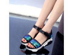 Feeltime2016夏季新款粗跟凉鞋女夏中跟露趾一字扣包跟性感高跟鞋