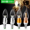 创华星led蜡烛灯 E14小螺口水晶吊灯光源 LED灯泡暖白尖泡拉尾3W