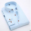 招分销:春季青年休闲时尚棉亚麻长袖蓝色男士衬衫修身型