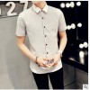 2016夏季新款时尚青年男式短袖t恤修身男士纯色翻领衬衫批发