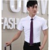 韩版男式商务修身收腰合体白色工装斜纹绣花衬衫定制定做衬衣男士