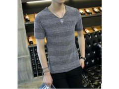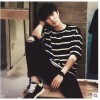 夏季韩版男式条纹圆领纯棉短袖t恤宽松潮流男装半袖体恤蝙蝠衫帅t