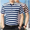 夏季新品梦特娇短袖t恤正品男士商务条纹翻领男式T恤衫大码男装潮