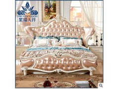 2813A#新中式纯手工精致雕刻进口橡木实木双人床1.8米床宜佳家居