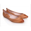 米克诺斯复古羊皮女鞋软牛筋底软面尖头真皮浅口镂空女士平底单鞋