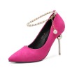2022欧美春夏款绒面串珠单鞋尖头细跟高跟女鞋