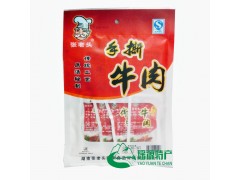 张老头牛肉干为张氏家族祖传秘方珍品,历史悠久,品味卓著,精选优质鲜嫩牛肉,古方佐料,经十余道独特工艺精制。产品经严格检疫、检验,达到国家食品卫生各项指标,其肉质鲜嫩,色泽油润,香嫩可口,回味无穷,营养丰富,众口至尊,风靡南北而闻名。高蛋白,低脂肪食品,是居家旅行,休闲食用,馈赠家友之传统美食。